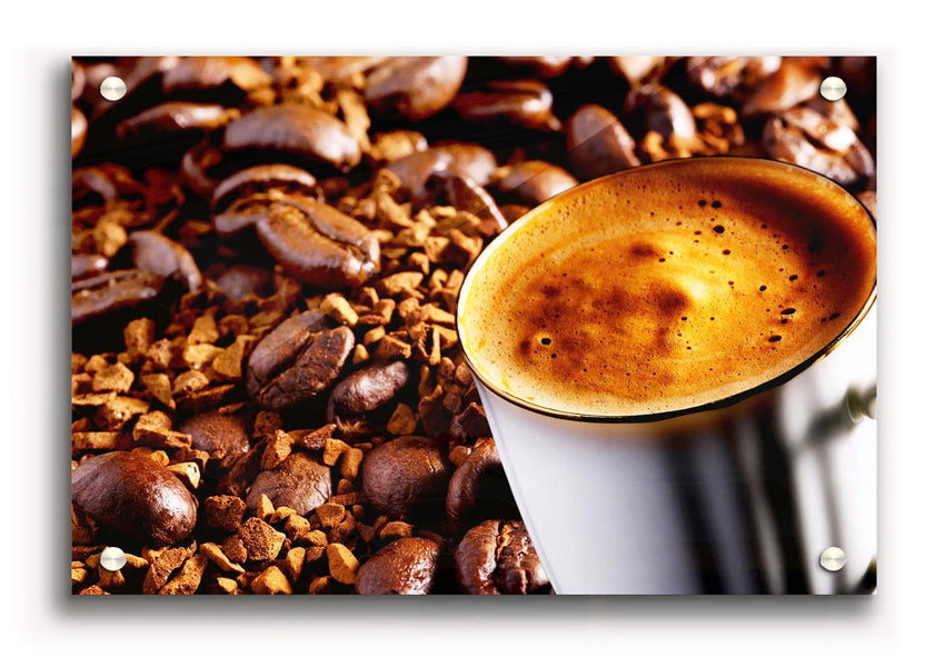 Coffee Bean Madness Acrylic Print , UV printed on 5mm thick acrylic. Hang it straight from the box with the provide standoffs.