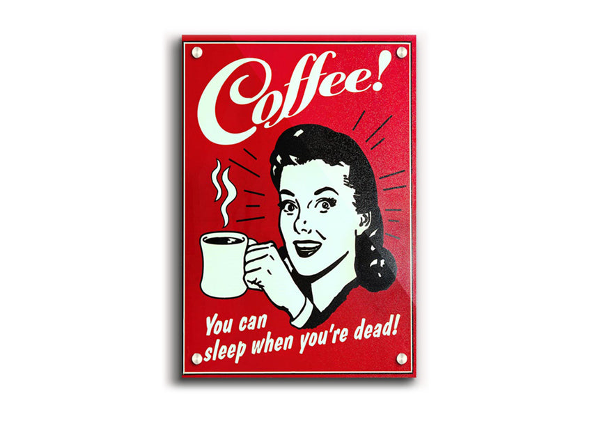Coffee You Can Sleep Acrylic Print , UV printed on 5mm thick acrylic. Hang it straight from the box with the provide standoffs.