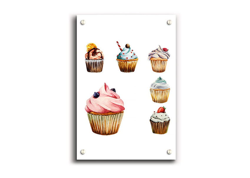 Cupcake 1 Acrylic Print , UV printed on 5mm thick acrylic. Hang it straight from the box with the provide standoffs.