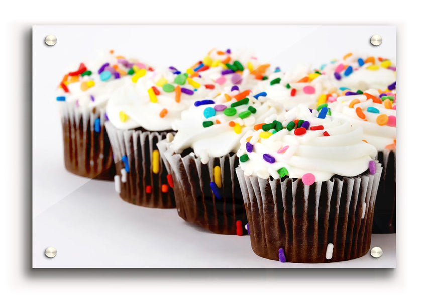 Cupcake Srinkles Acrylic Print , UV printed on 5mm thick acrylic. Hang it straight from the box with the provide standoffs.