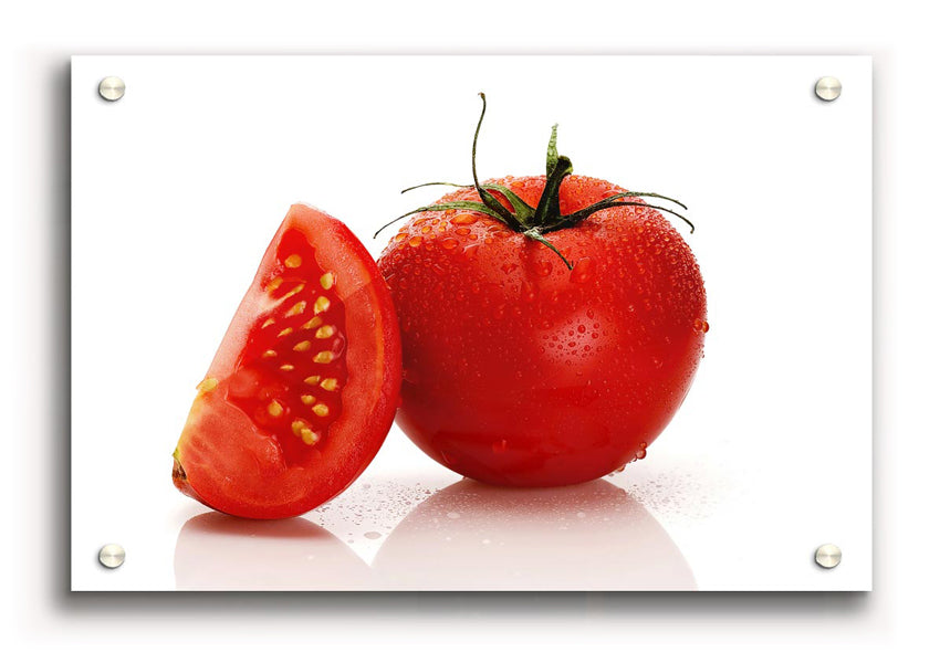 Dewdrop Tomato Acrylic Print , UV printed on 5mm thick acrylic. Hang it straight from the box with the provide standoffs.