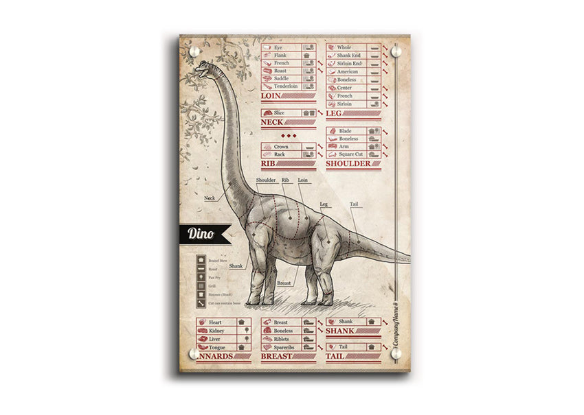 Dino Butchers Selection Acrylic Print , UV printed on 5mm thick acrylic. Hang it straight from the box with the provide standoffs.