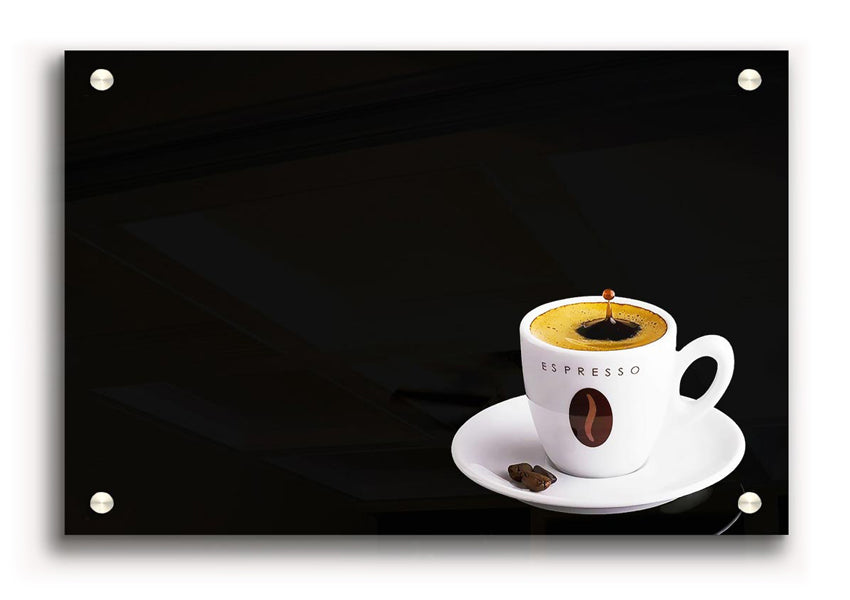 Espresso Drop Acrylic Print , UV printed on 5mm thick acrylic. Hang it straight from the box with the provide standoffs.