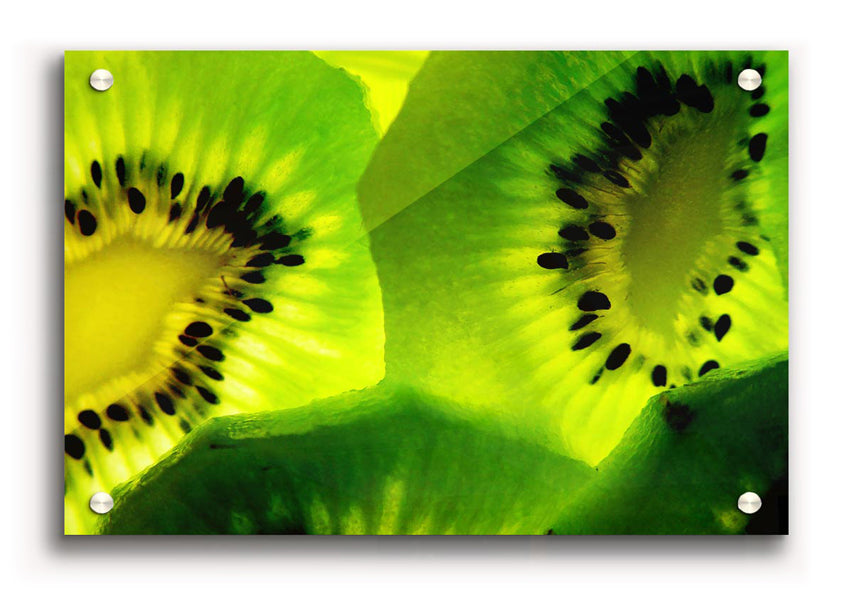 Kiwi Close Up Acrylic Print , UV printed on 5mm thick acrylic. Hang it straight from the box with the provide standoffs.