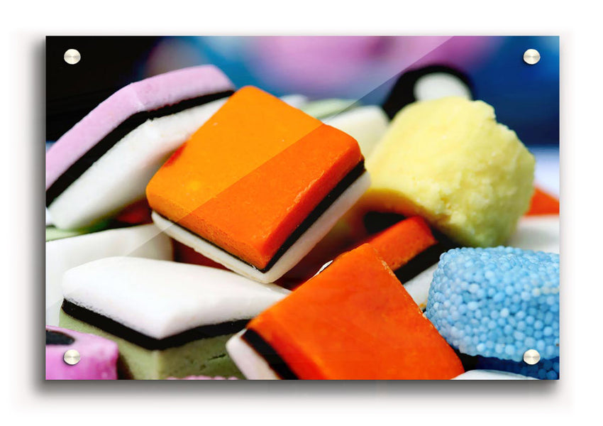 Liquorice Allsorts Acrylic Print , UV printed on 5mm thick acrylic. Hang it straight from the box with the provide standoffs.