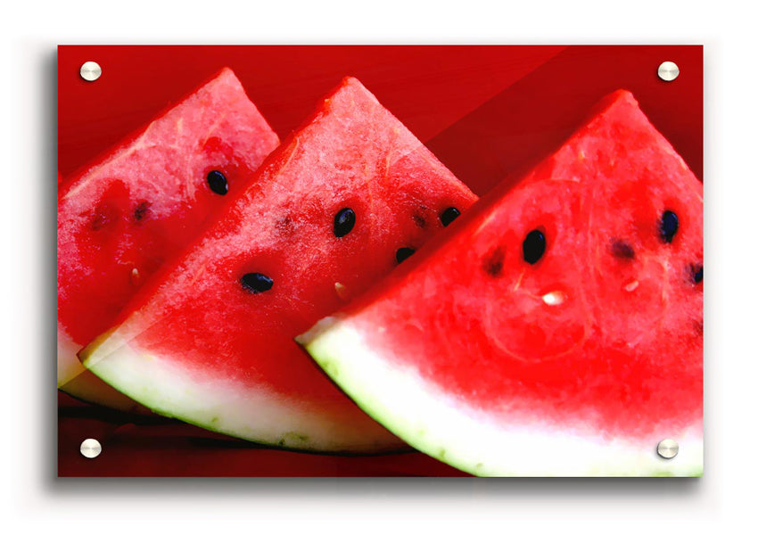 Melon Slices Acrylic Print , UV printed on 5mm thick acrylic. Hang it straight from the box with the provide standoffs.