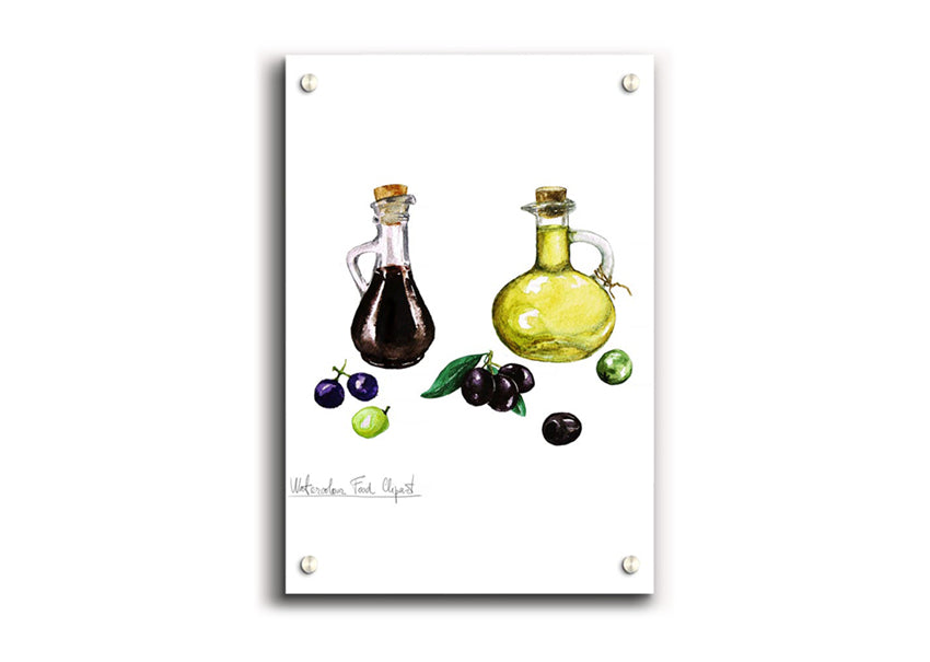 Olive Oil Bottles Acrylic Print , UV printed on 5mm thick acrylic. Hang it straight from the box with the provide standoffs.