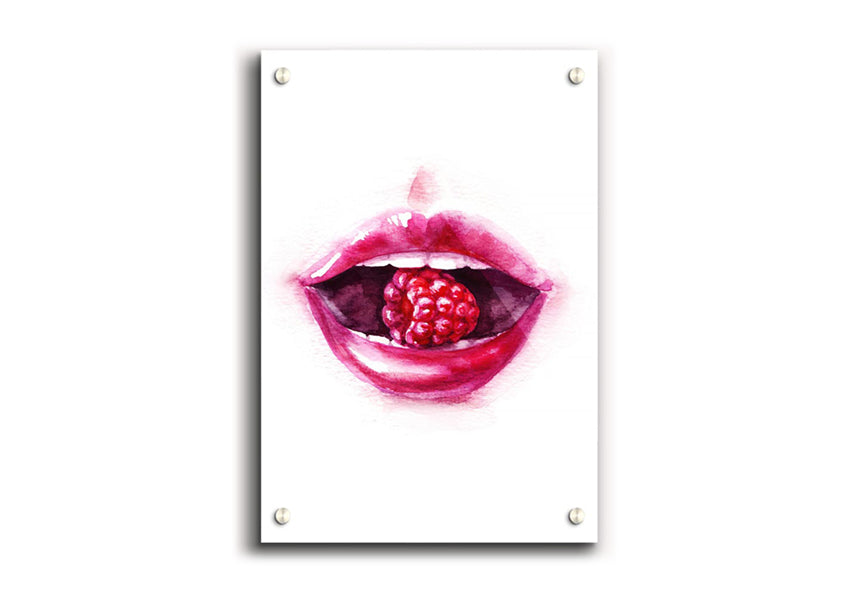 Raspberry Lips Acrylic Print , UV printed on 5mm thick acrylic. Hang it straight from the box with the provide standoffs.