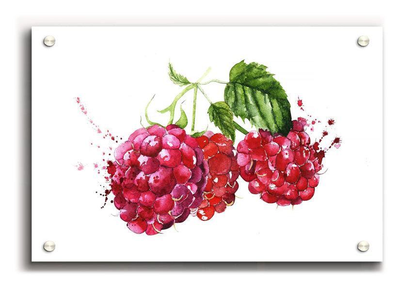 Raspberry Trio Acrylic Print , UV printed on 5mm thick acrylic. Hang it straight from the box with the provide standoffs.