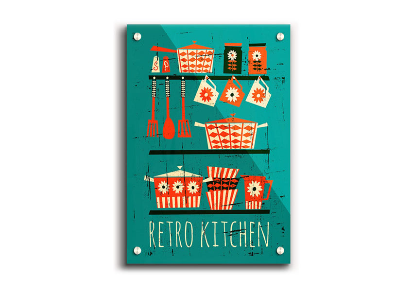 Retro Kitchen 2 Acrylic Print , UV printed on 5mm thick acrylic. Hang it straight from the box with the provide standoffs.