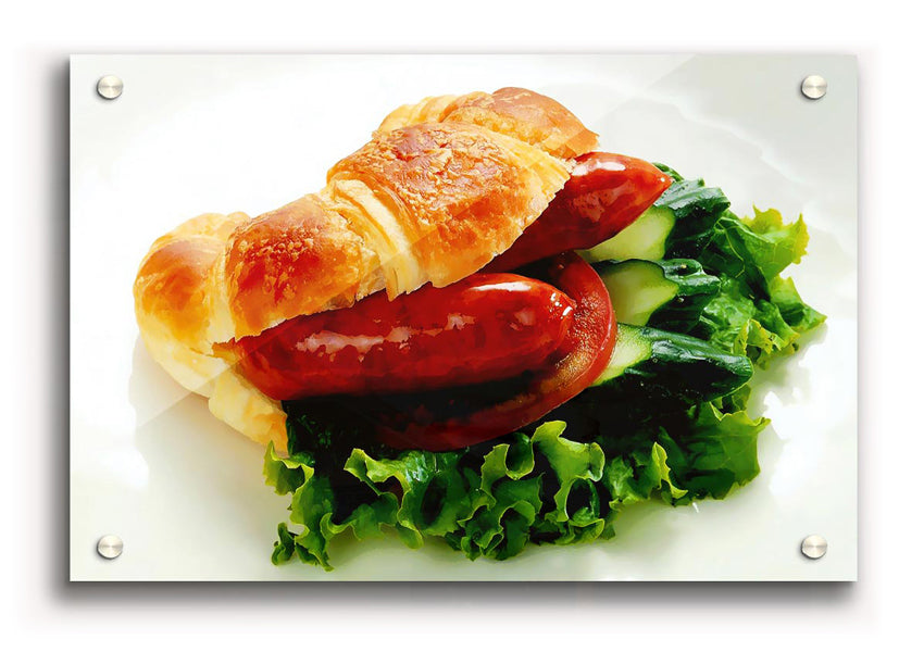 Sausage Croissant Acrylic Print , UV printed on 5mm thick acrylic. Hang it straight from the box with the provide standoffs.