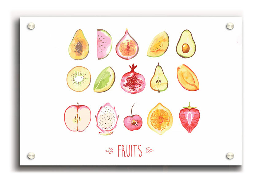 Selection Of Fruits 1 Acrylic Print , UV printed on 5mm thick acrylic. Hang it straight from the box with the provide standoffs.
