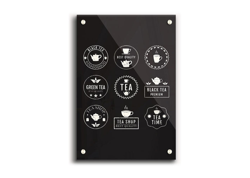 Selection Of Teas Acrylic Print , UV printed on 5mm thick acrylic. Hang it straight from the box with the provide standoffs.