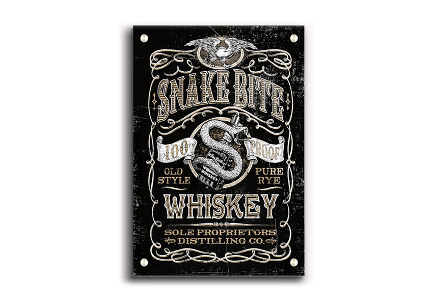 Snake Bite Whiskey Acrylic Print , UV printed on 5mm thick acrylic. Hang it straight from the box with the provide standoffs.