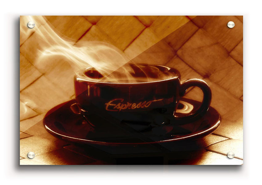 Steamy Coffee Acrylic Print , UV printed on 5mm thick acrylic. Hang it straight from the box with the provide standoffs.