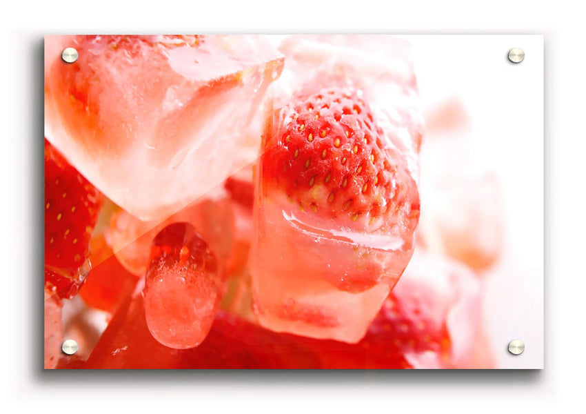 Strawberries On Ice Cubes Acrylic Print , UV printed on 5mm thick acrylic. Hang it straight from the box with the provide standoffs.