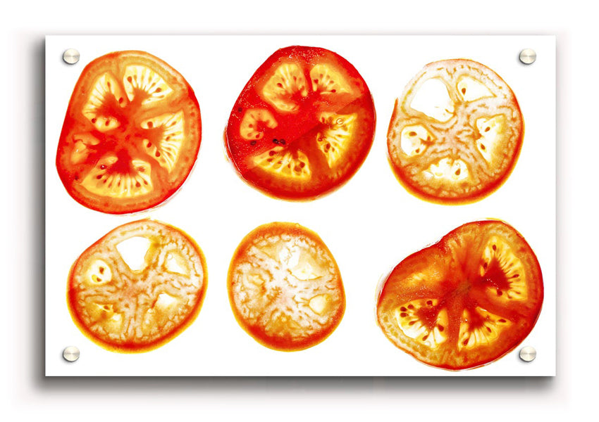 Tomato Slices Acrylic Print , UV printed on 5mm thick acrylic. Hang it straight from the box with the provide standoffs.