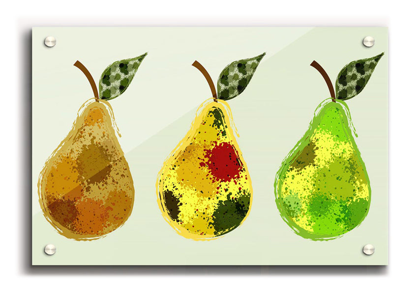 Trio Of Pears Acrylic Print , UV printed on 5mm thick acrylic. Hang it straight from the box with the provide standoffs.