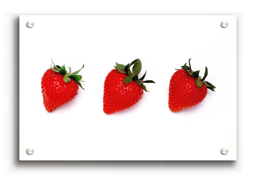 Trio Of Strawberrys Acrylic Print , UV printed on 5mm thick acrylic. Hang it straight from the box with the provide standoffs.
