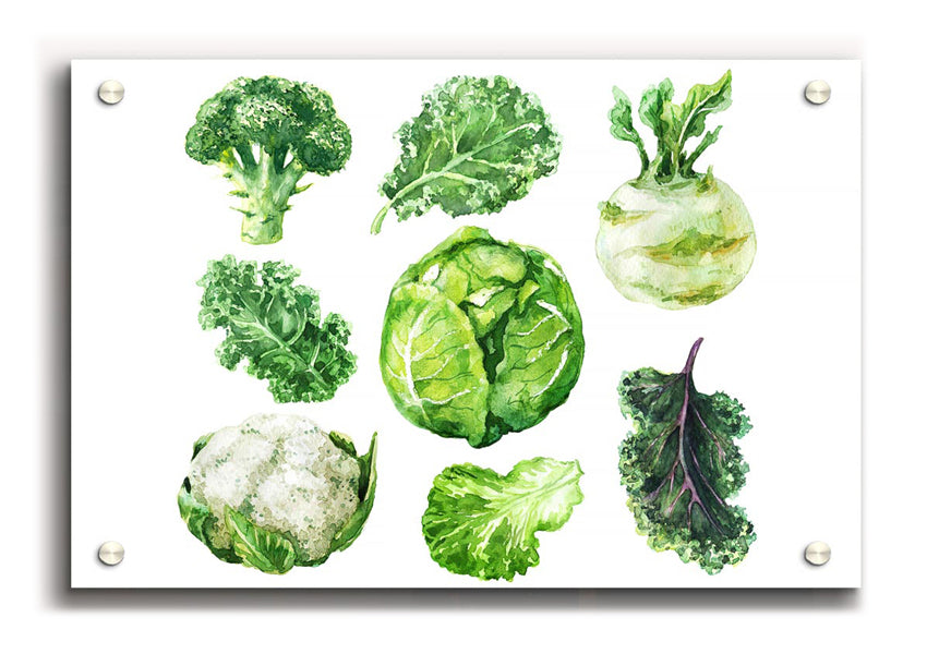 Vegetable Selection 3 Acrylic Print , UV printed on 5mm thick acrylic. Hang it straight from the box with the provide standoffs.