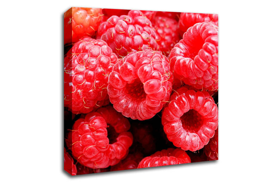 Raspberry Delight Square Canvas Print handmade in the UK. Stretched over a 2 inch thick wooden box frame, ready to hang on your wall.