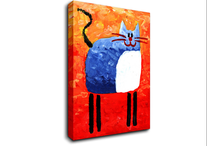Blue Cat Canvas Print handmade in the UK. Stretched over a 2 inch thick wooden box frame, ready to hang on your wall.
