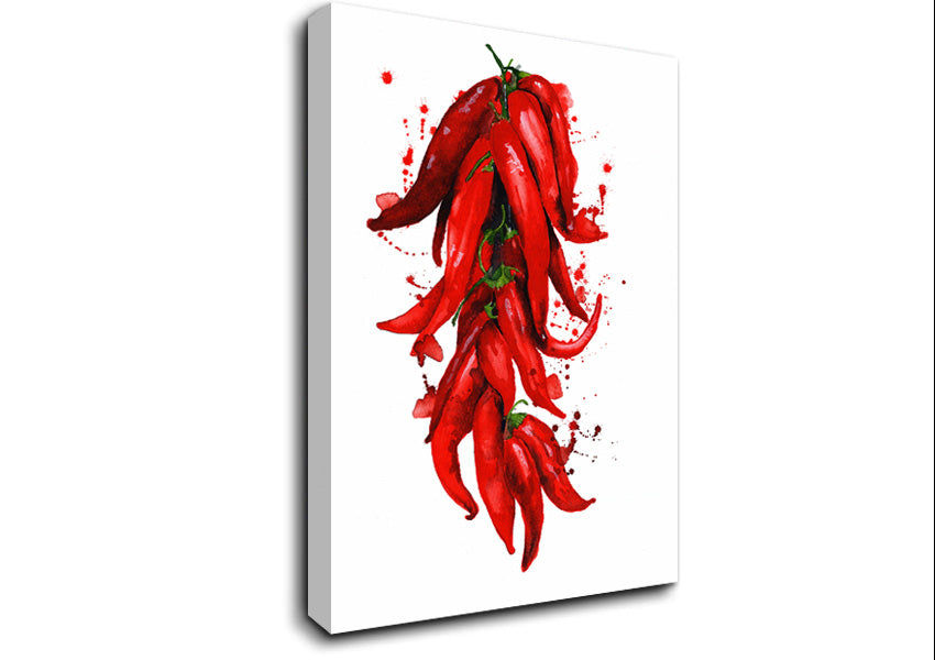 Bunch Of Chilis Canvas Print handmade in the UK. Stretched over a 2 inch thick wooden box frame, ready to hang on your wall.
