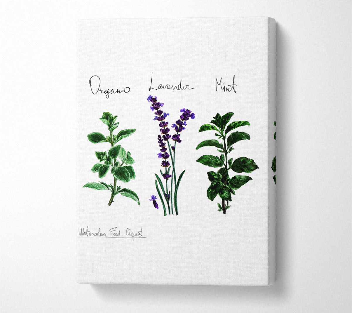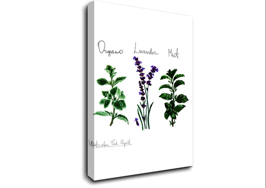 Herb Selection 2 Canvas Print handmade in the UK. Stretched over a 2 inch thick wooden box frame, ready to hang on your wall.