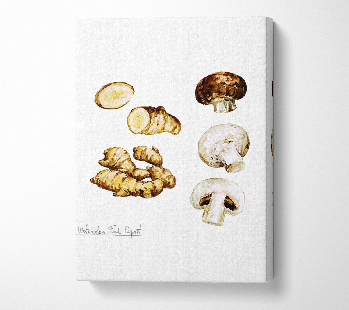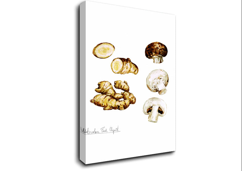 Mushrooms And Ginger Canvas Print handmade in the UK. Stretched over a 2 inch thick wooden box frame, ready to hang on your wall.