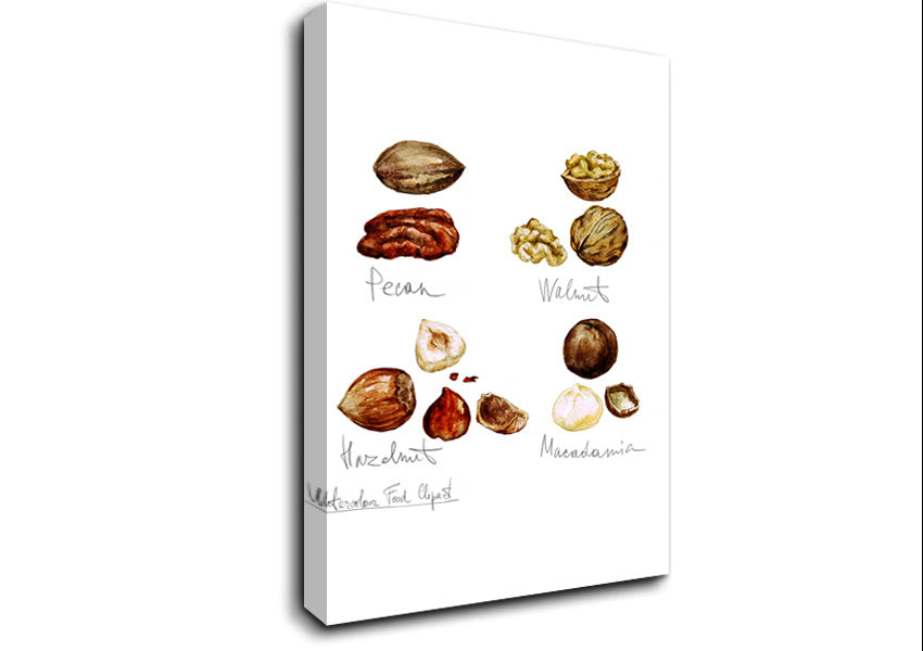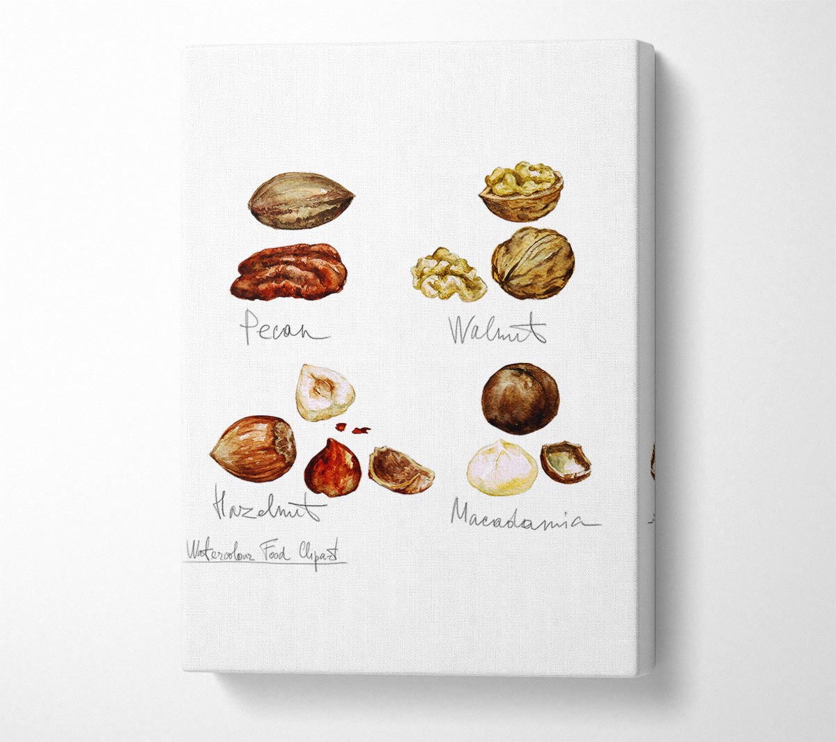 Nut Selection 1 Canvas Print handmade in the UK. Stretched over a 2 inch thick wooden box frame, ready to hang on your wall.