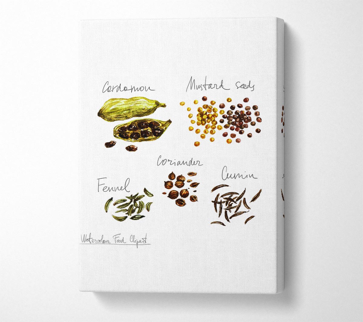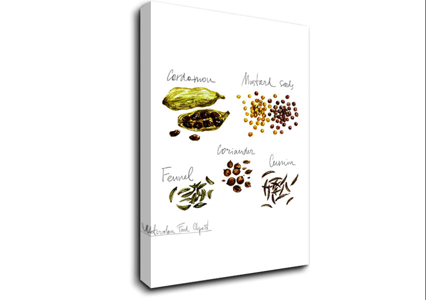 Spice Selection 1 Canvas Print handmade in the UK. Stretched over a 2 inch thick wooden box frame, ready to hang on your wall.