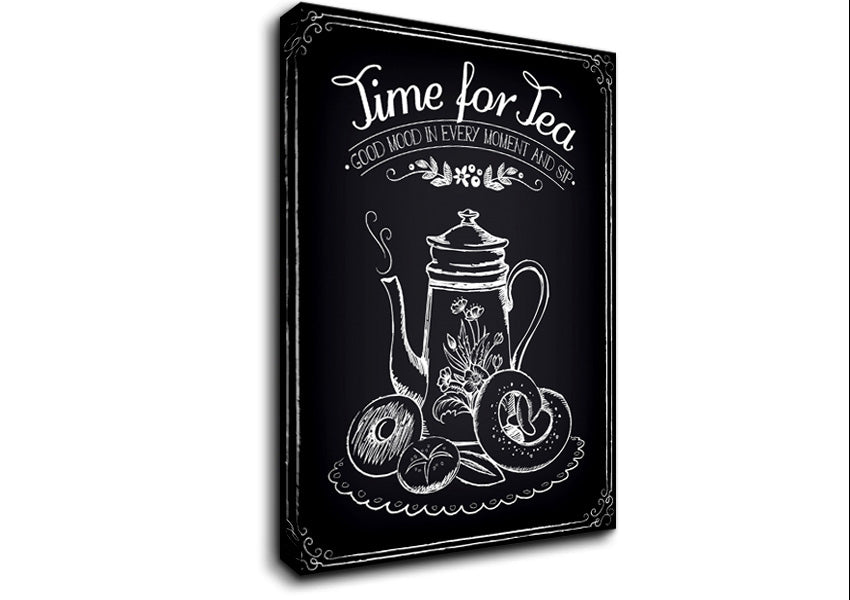 Time For Tea 1 Canvas Print handmade in the UK. Stretched over a 2 inch thick wooden box frame, ready to hang on your wall.