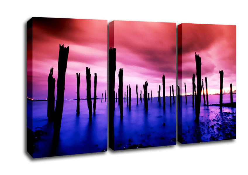 Surreal Lake Skies 3 Panel Canvas Print handmade in the UK. Stretched over a 2 inch thick wooden box frame, ready to hang on your wall.
