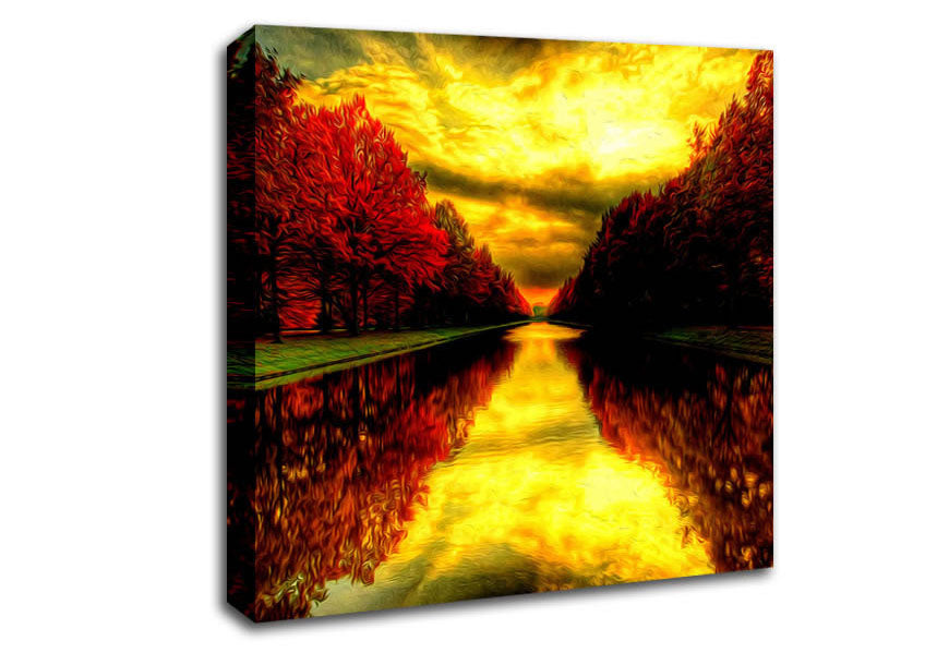 Fall Reflections Square Canvas Print handmade in the UK. Stretched over a 2 inch thick wooden box frame, ready to hang on your wall.