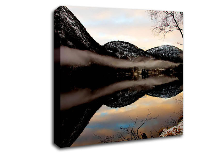 Lake Paradise Square Canvas Print handmade in the UK. Stretched over a 2 inch thick wooden box frame, ready to hang on your wall.