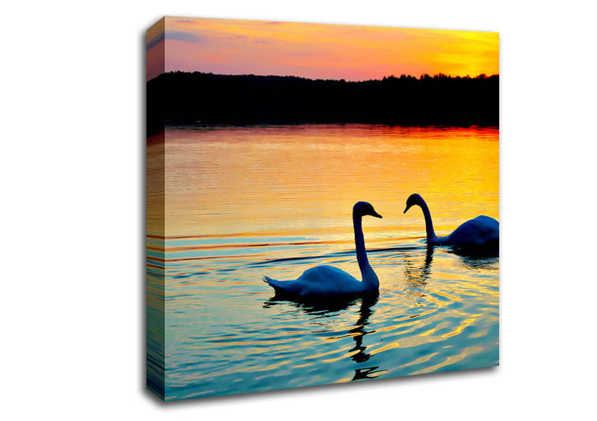 Lake Swans Square Canvas Print handmade in the UK. Stretched over a 2 inch thick wooden box frame, ready to hang on your wall.