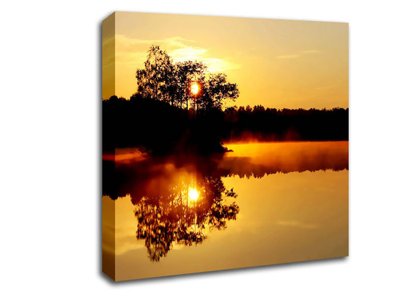 Reflections Of The Sunset Tree Square Canvas Print handmade in the UK. Stretched over a 2 inch thick wooden box frame, ready to hang on your wall.