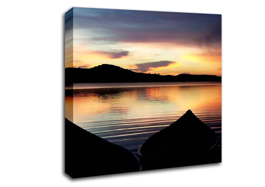 Rowing Boats At Dawn Square Canvas Print handmade in the UK. Stretched over a 2 inch thick wooden box frame, ready to hang on your wall.