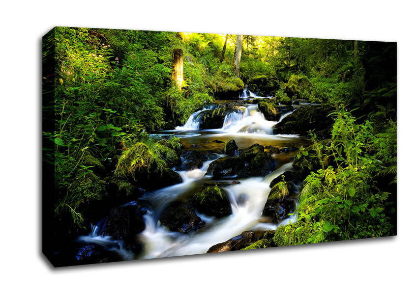 Forest Creek Wide Canvas Print handmade in the UK. Stretched over a 2 inch thick wooden box frame, ready to hang on your wall.