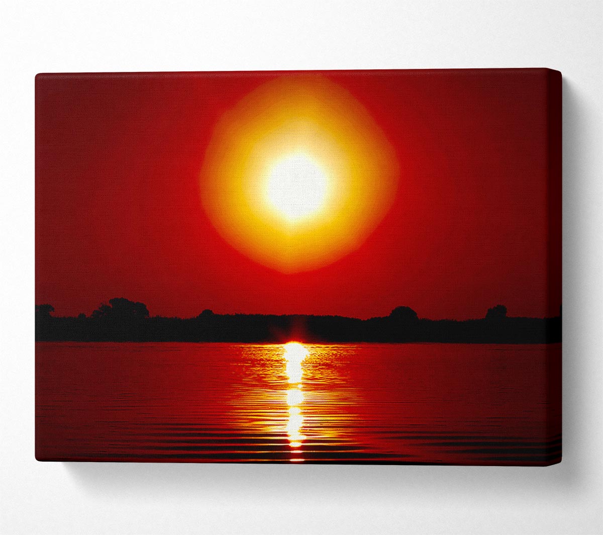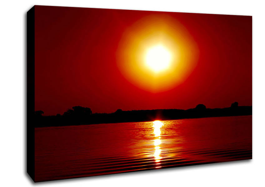 Orange Lake Sun Canvas Print handmade in the UK. Stretched over a 2 inch thick wooden box frame, ready to hang on your wall.