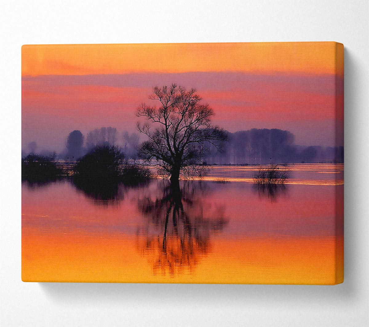 Orange Morning Reflections Canvas Print handmade in the UK. Stretched over a 2 inch thick wooden box frame, ready to hang on your wall.