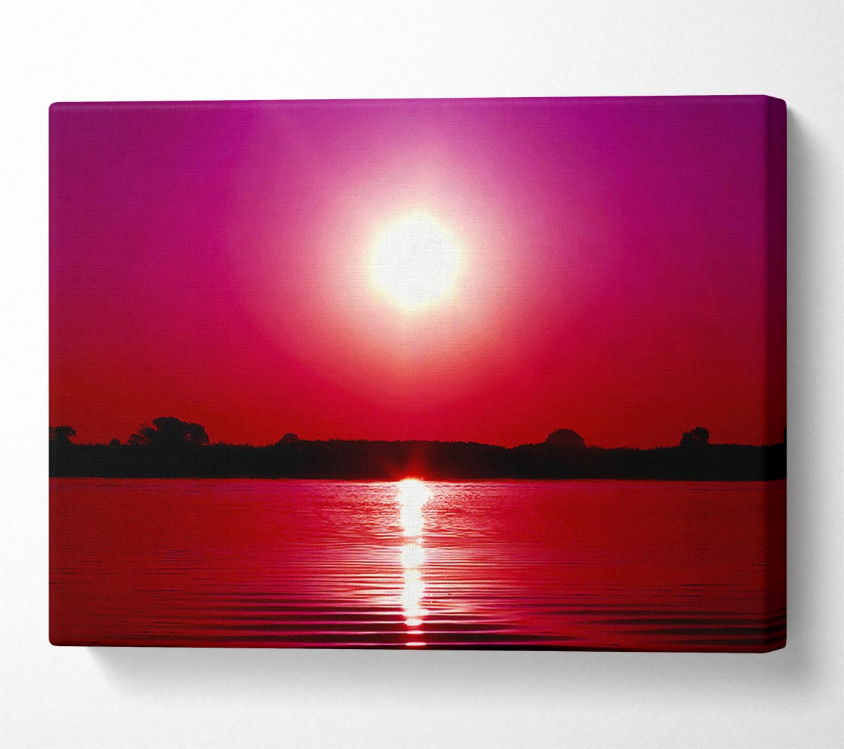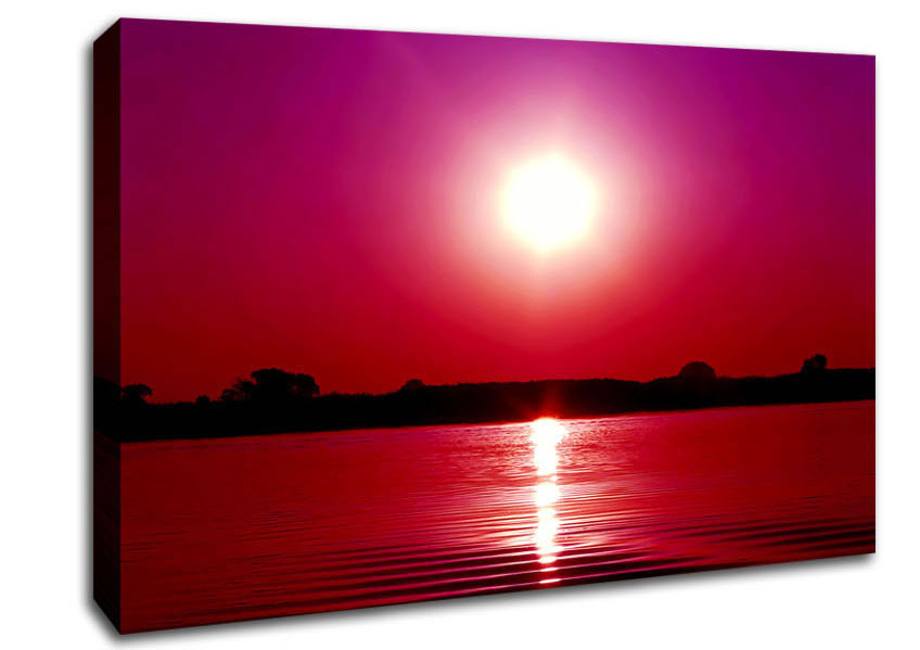 Pink Lake Sun Canvas Print handmade in the UK. Stretched over a 2 inch thick wooden box frame, ready to hang on your wall.