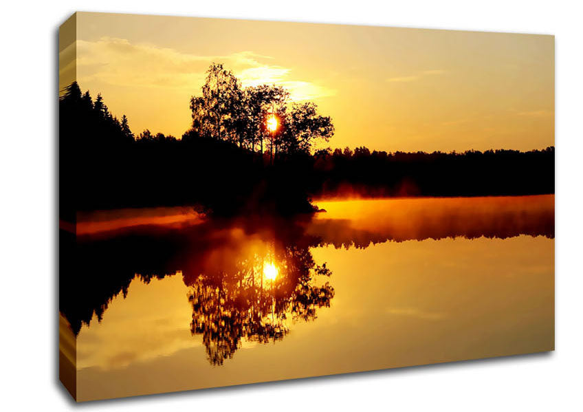 Reflections Of The Sunset Tree Canvas Print handmade in the UK. Stretched over a 2 inch thick wooden box frame, ready to hang on your wall.