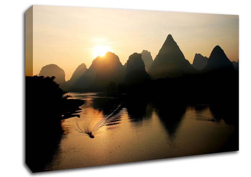 Sunrise Reflections Canvas Print handmade in the UK. Stretched over a 2 inch thick wooden box frame, ready to hang on your wall.