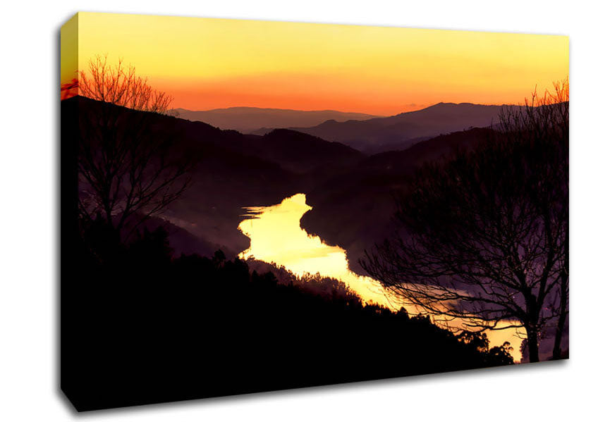 The Mountain River Canvas Print handmade in the UK. Stretched over a 2 inch thick wooden box frame, ready to hang on your wall.