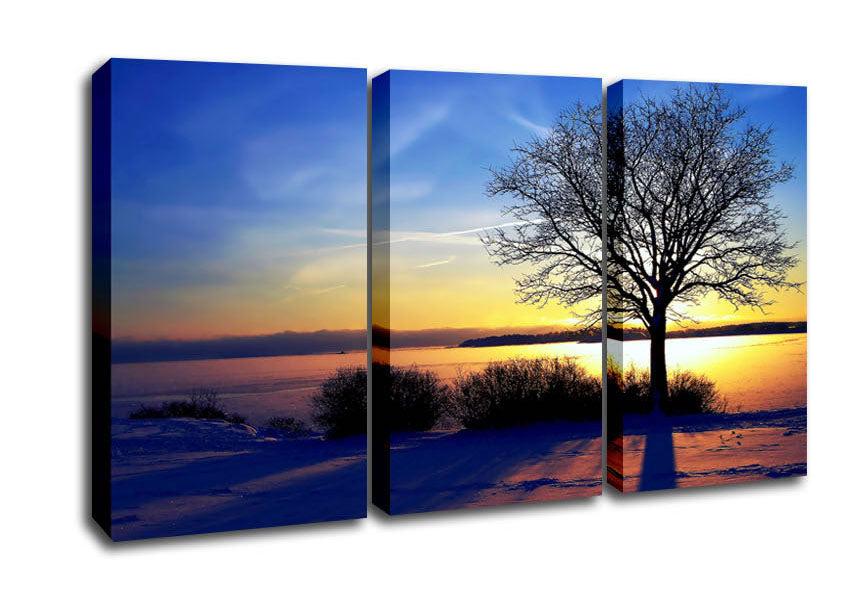 A Calm Winters Day 3 Panel Canvas Print handmade in the UK. Stretched over a 2 inch thick wooden box frame, ready to hang on your wall.