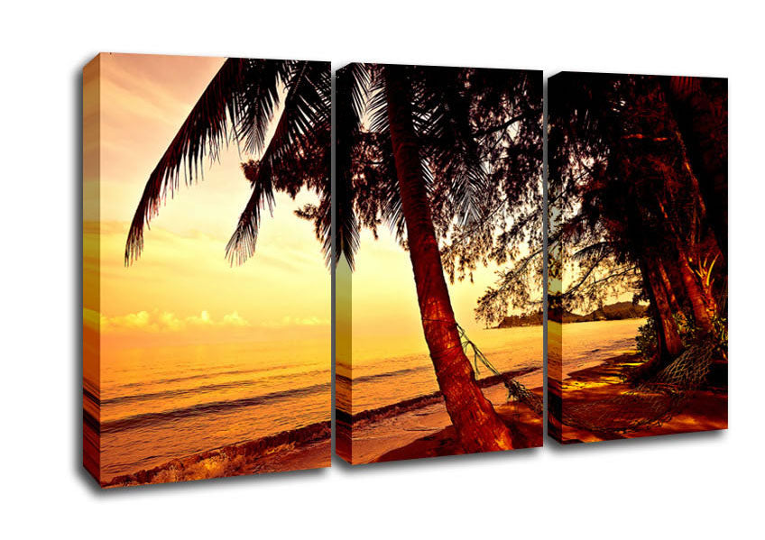 Beach Paradise 3 Panel Canvas Print handmade in the UK. Stretched over a 2 inch thick wooden box frame, ready to hang on your wall.