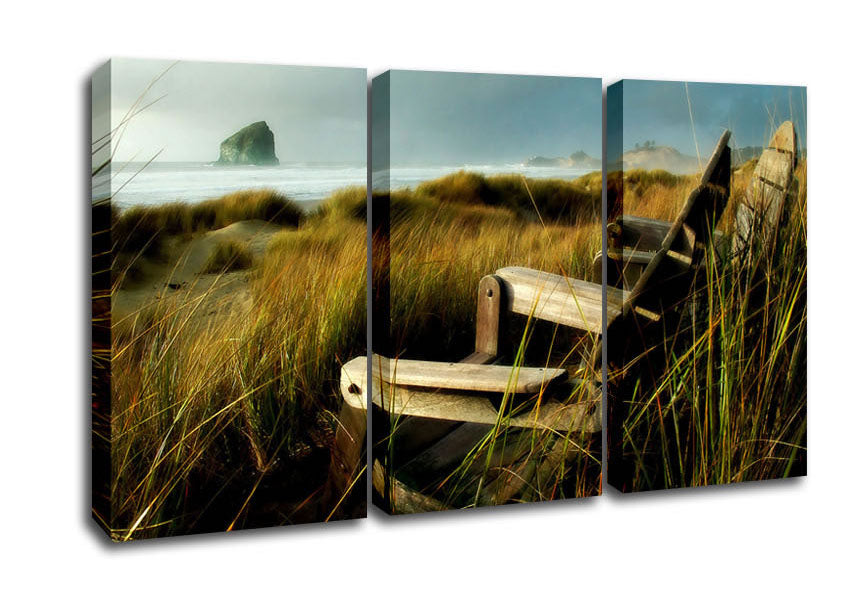 Coast Dunes 3 Panel Canvas Print handmade in the UK. Stretched over a 2 inch thick wooden box frame, ready to hang on your wall.