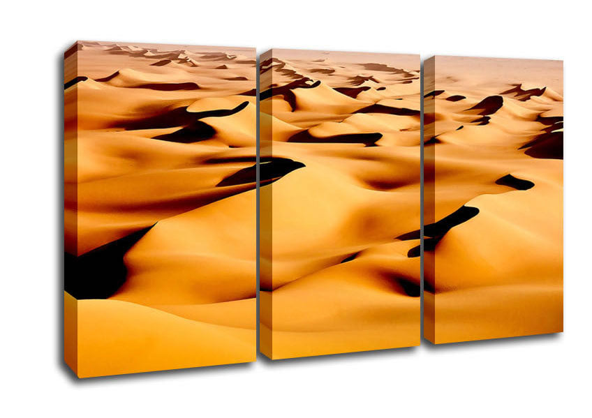 Desert Sand Dunes 3 Panel Canvas Print handmade in the UK. Stretched over a 2 inch thick wooden box frame, ready to hang on your wall.