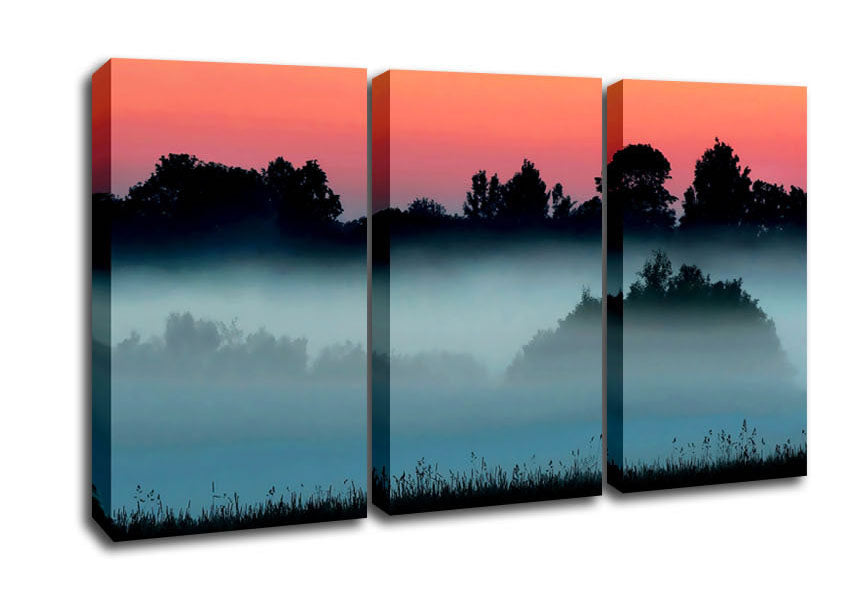 English Countryside Mist 3 Panel Canvas Print handmade in the UK. Stretched over a 2 inch thick wooden box frame, ready to hang on your wall.